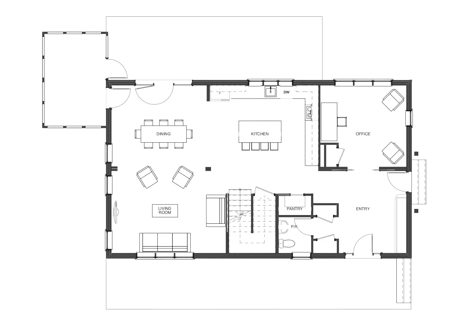 As early adopters in the net-zero movement, this family of five sought both energy independence and a peaceful family home base set in the rolling hills of Cumberland, Maine. To honor their love for the classic farmhouse, and a need for room for play, work, and the daily rhythms of family, we worked with them to adapt a BrightBuilt original into a sun-filled open-concept solar powered hub. A generous mudroom with tucked-away powder room, ample office space off the entry for focus space, a light-filled kitchen with central island and walk-in pantry opening to a generous living and dining area, and four comfortable bedrooms, three bathrooms and a laundry room on the second floor came together within the farmhouse frame, to make the perfect home for this young family.